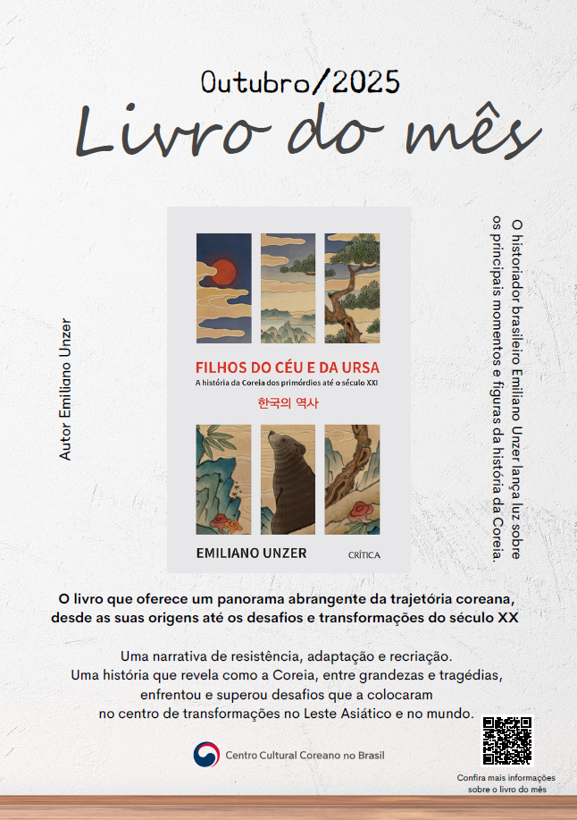 ※ As informações sobre as inscrições para o 「Clube do Livro de Outubro – Filhos do Céu e da Ursa: A história da Coreia dos primórdios até o século XXI (Emiliano Unzer), onde o livro será lido e debatido, podem ser consultadas em publicação separada (acesse aqui).