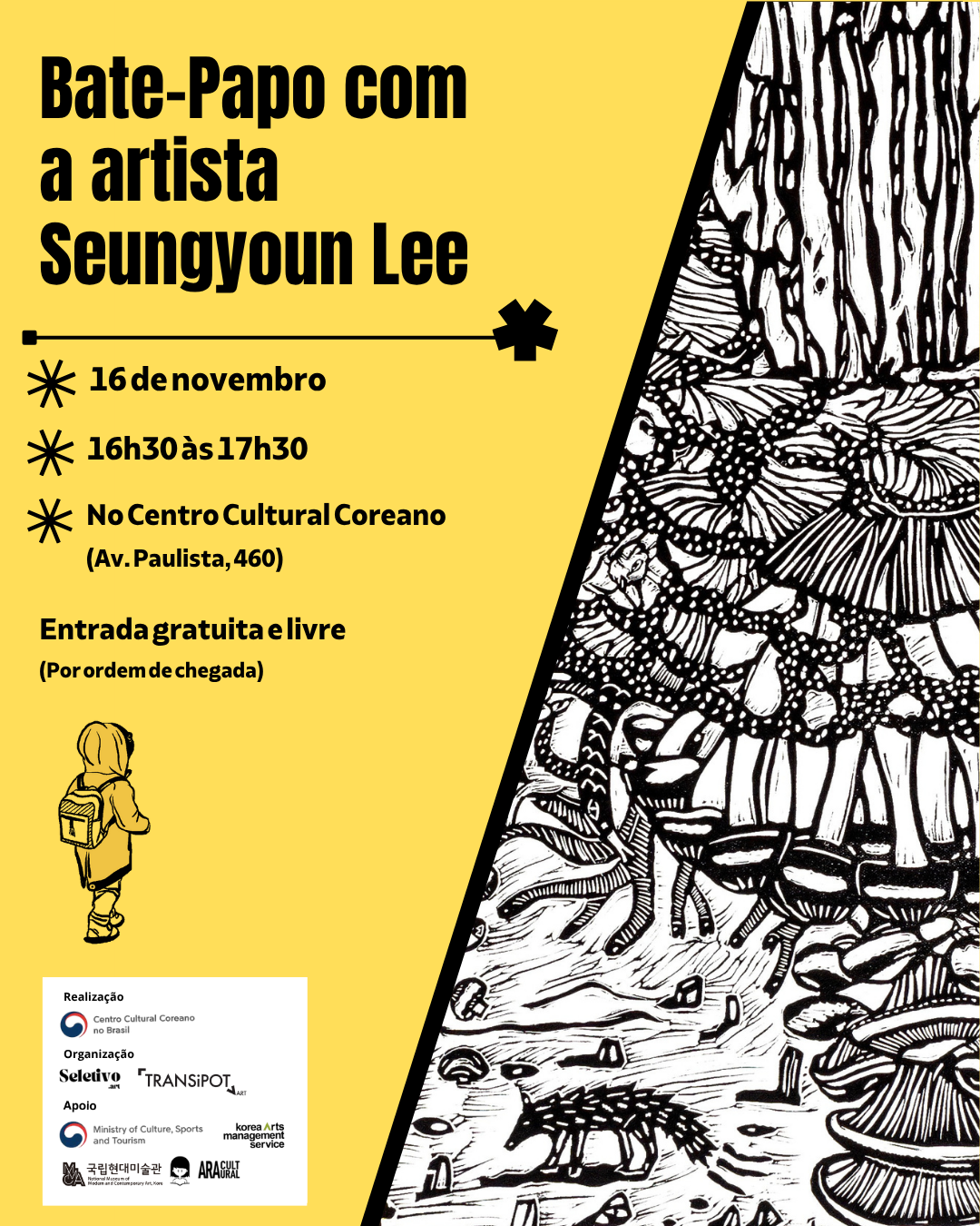 O Centro Cultural Coreano no Brasil (CCCB) anuncia um encontro especial com a artista sul-coreana Seungyoun Lee, autora do livro Floresta do mofo dourado, a ser realizado no dia 16 de novembro, às 16h30, no Centro Cultural Coreano, na Av. Paulista.