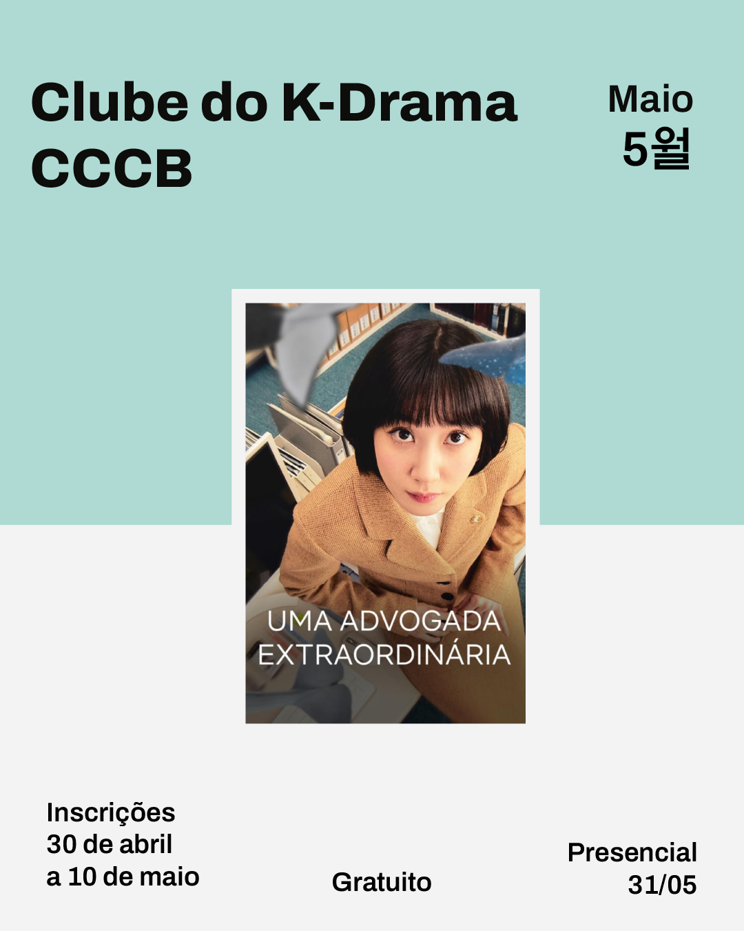 A fim de promover os K-dramas no Brasil, o Centro Cultural Coreano no Brasil (CCCB) anuncia a abertura das inscrições para a edição de maio do seu clube do K-drama, no qual será discutido Uma Advogada Extraordinária (Netflix, 2022).